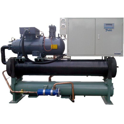 工業冷水機系統經過真空試驗合格后,便可利用系統內的真空狀態進行制冷劑的充注工作。對于新安裝的系統,可由高壓端加入制冷劑,其操作方法如下:開啟冷凝器用的冷卻水系統,系統中閥門保持真空試驗時的狀態。